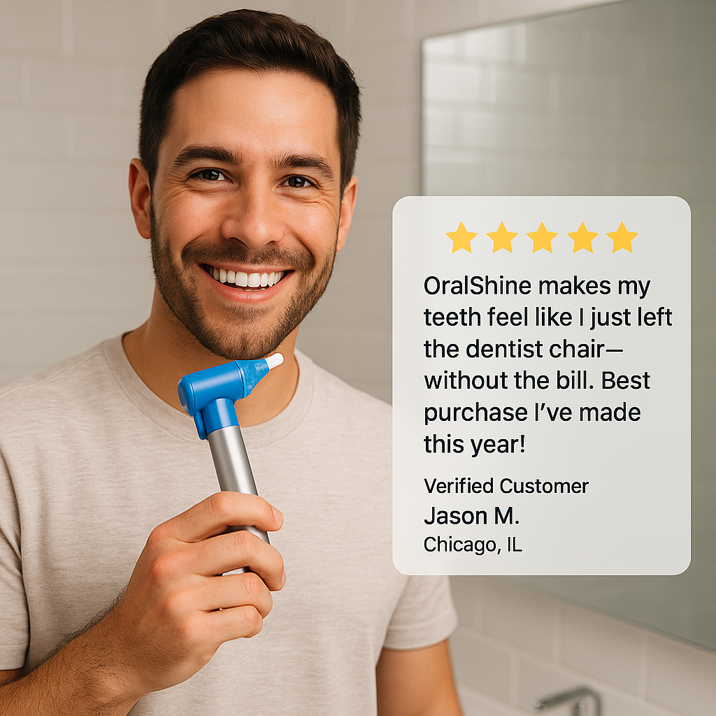 With OralShine, I just press a button and my teeth feel smooth and glossy like I just left the clinic. Finally, a reliable way to keep my smile bright at home without costly visits.