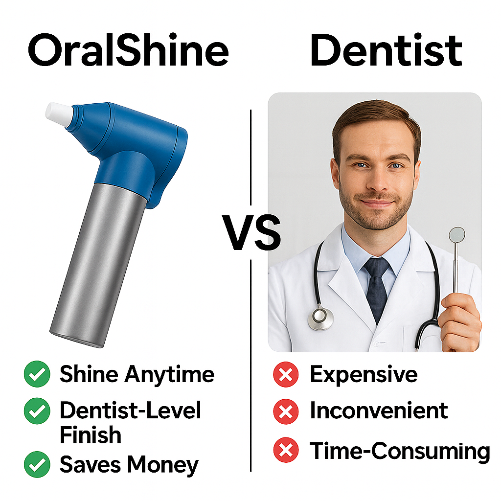 OralShine is a compact, cordless tooth polisher that uses professional polishing technology to remove stains and bring out a glossy, dentist-level shine right at home.